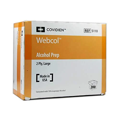 Covidien Curity and Henry Schein medium and large alcohol prep wipes are 2-ply, non-woven sponge pads that come in individual packets. These disposable prep pads are sterile, latex free and contain 70% Isopropyl Alcohol. Medium and large sizes sold in boxes of 200.