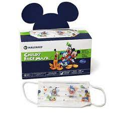 #25867 and #25868 Halyard Fluidshield Earloop Procedure Mask, Lavender and Yellow, ASTM Level 1, 50/box. #32856 Halyard Kid Face Mask, Disney, Earloop, Ages 4-12, Box of 75.Â