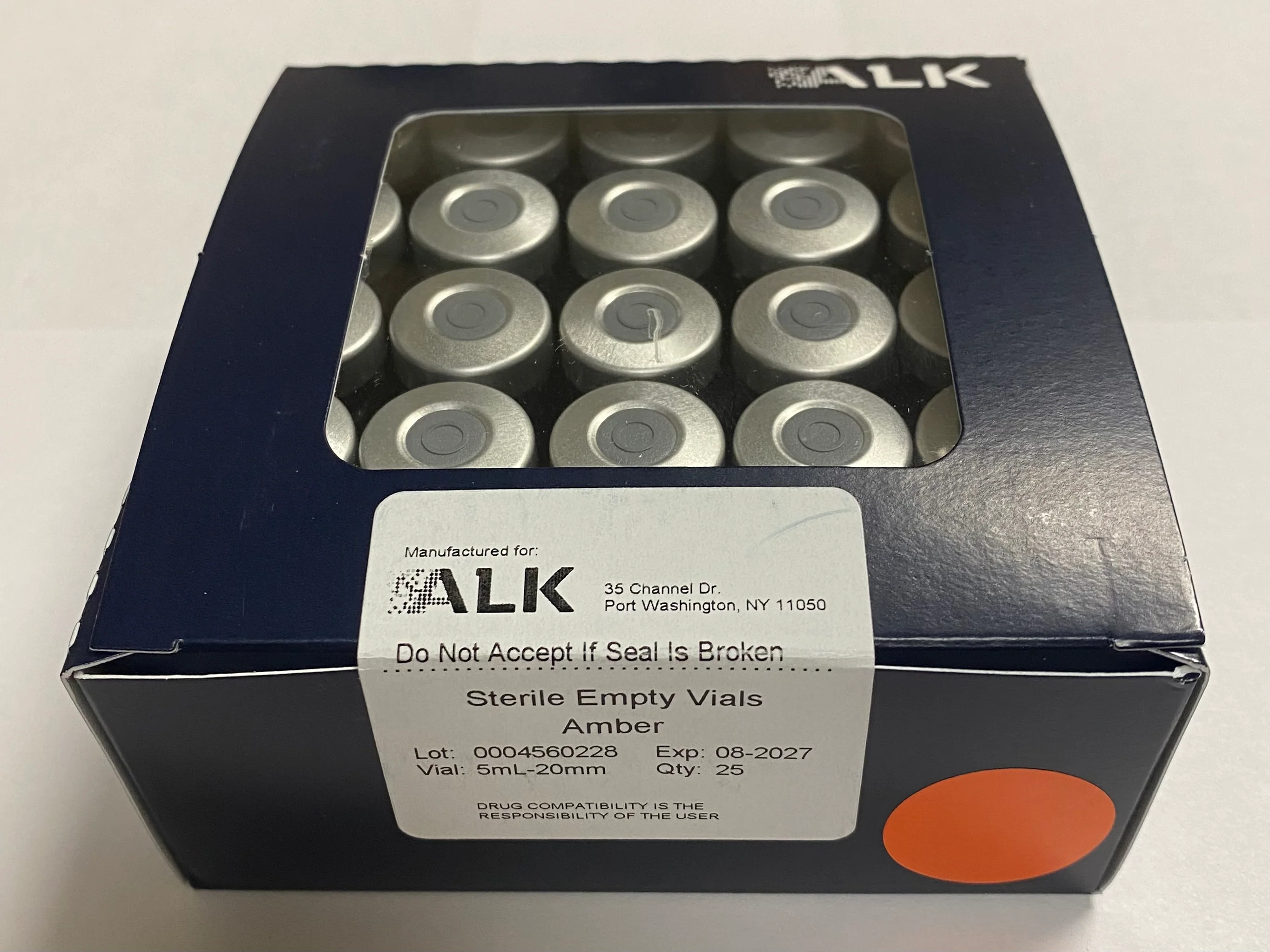 13mm & 20mm Sterile, Empty Amber Vials, ALK