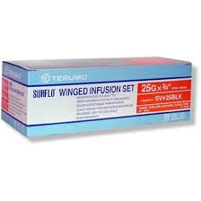 Terumo SurFlo Winged Infusion Sets provide soft, flexible interlocking wings that readily conform to the body's contour. The wing is angled for ease of positioning of the needle during venipuncture. Â The SurFlo Winged Infusion Needle Set provides less risk of vessel damage or occlusion of the lumen. The precisely honed needle with Ultra-Thin wall design assures ease of penetration and continued access with a single insertion. The Terumo SurFlo Winged Infusion Needle Set is DEHP Free.